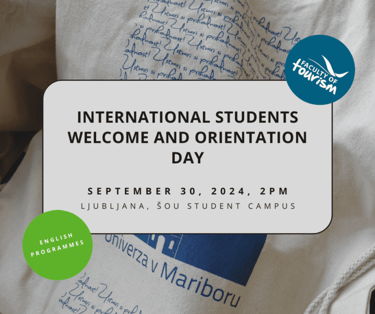 Before the beginning of the 2024/25 academic year, the Faculty of Tourism is holding INTERNATIONAL STUDENTS WELCOME  AND ORIENTATION DAY at ŠOU Kampus Ljubljana on September 30.