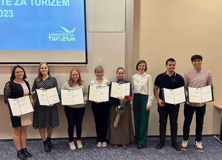 The event, hosted by Lecturer Hana Kuhar and Associate Professor Dr. Tomi Špindler, was complemented by the singing of student Sanjana Naushad and a video overview of the events and achievements of the past academic year, which were indeed numerous. Thus, at the Faculty of Tourism, we are slowly concluding the year with satisfaction and looking forward to the challenges that the coming year will bring.