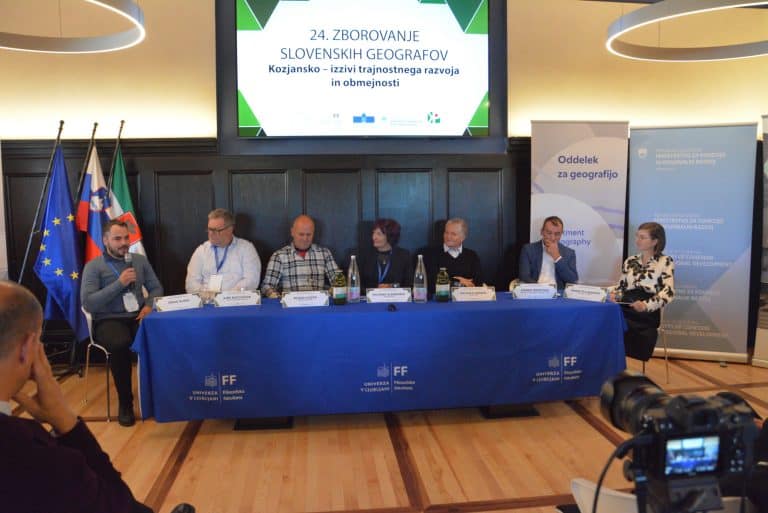 At the beginning of October, after months of preparation, we partnered in organizing the traditional 24th Annual Meeting of Slovenian Geographers, which this year, after several decades, once again took place in the Kozjansko region. This unique landscape – close to where we operate and to which we are bound by many professional and personal ties – has been at the center of geographical research in recent years, particularly by the Department of Geography at the Faculty of Arts, University of Ljubljana. The Association of Slovenian Geographers, as the main organizer, invited us to co-create the central part of the first day’s program of this two-day event. The co-organization of the gathering was supported by the Ministry of Cohesion and Regional Development, while the local partnership was further strengthened by the Kozjansko Regional Park, which is also a regular destination for our fieldwork activities.