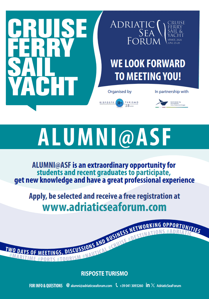 Študente in nedavne diplomante vabimo k prijavi na Alumni@ASF, posebno pobudo v okviru mednarodnega dogodka Adriatic Sea Forum – cruise, ferry, sail & yacht, ki je posvečen razvoju pomorskega turizma na območju Jadrana.