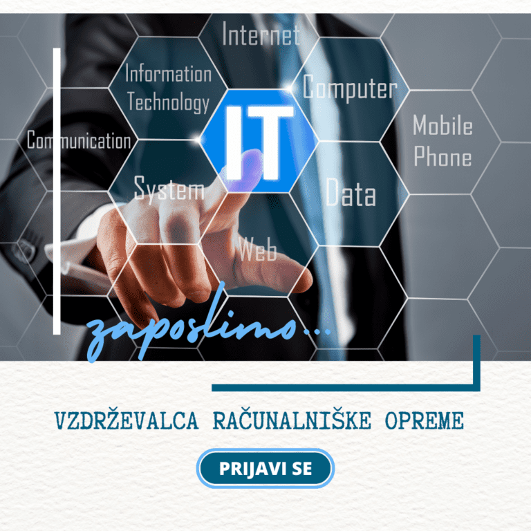 Na povezavi objavljamo prosto delovno mesto: J037009 - VZDRŽEVALEC RAČUNALNIŠKE OPREME VII/1, M/Ž